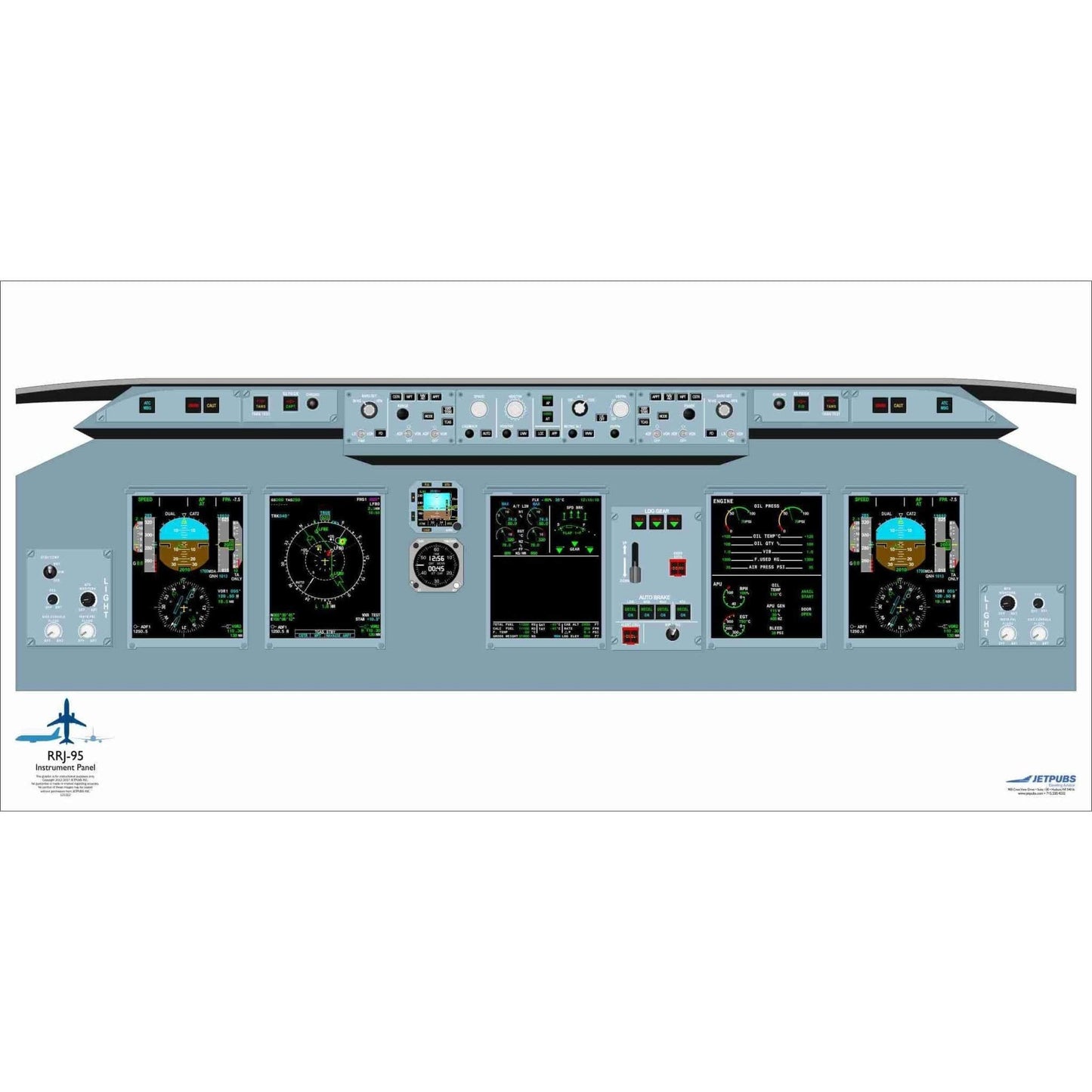The Sukhoi 18" x 36" Cockpit Poster by JETPUBS is a must-have visual aid for mastering the Sukhoi SSJ-100 and SuperJet instrument panels.
