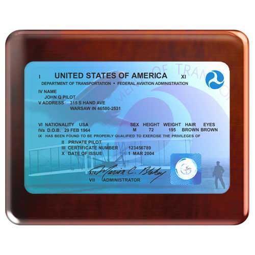 - Arte personalizada:Exibe as informações do seu certificado FAA em um impressionante painel de alumínio de 8" x 5".